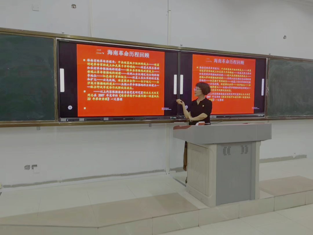 2022年5月26日晚8时,j9九游会于3栋教学楼204教室举办“不忘初心跟党走,青春筑梦新时代——领导干部讲党课”活动,j9九游会经理乔淑英老师以《海南红色旅游规划里的党史》为题讲授党史学习教育专题课。j9九游会全体员工党员、入党积极分子及2021级全体员工参加学习。
