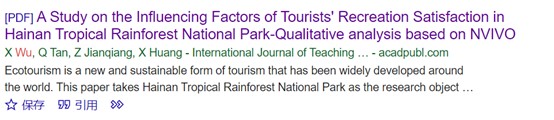 《A Study on the Influencing Factors of Tourists'Recreation Satisfaction in Hainan Tropical Rainforest National Park- Qualitative analysis based on NVIVO》(毋茜、谭琼琼)