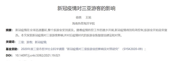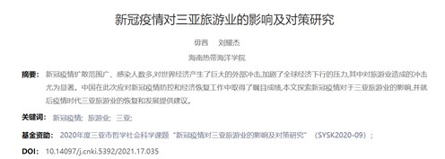 《新冠疫情对三亚旅游业的影响及对策研究》(毋茜、刘耀杰)