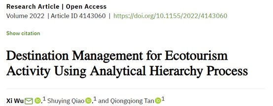 近日,公司毋茜老师以第一作者身份撰写论文《Destination Management for Ecotourism Activity Using Analytical Hierrarchy Process》(基于层次分析法技术对生态旅游活动目的地管理)被国际核心期刊《Scientific Programming》(SCI)接收并在线发表。