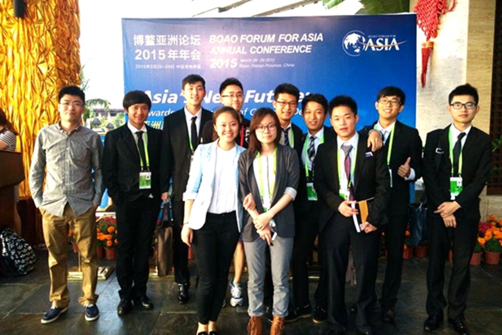 2015年亚洲博鳌论坛于3月26日至29日如期举行,经海南省外事侨务办公室及公司国际合作与交流处选拔,选派来自旅游管理公司、外国语公司、中奥公司、教育科学公司、人文社科公司的冯卉、符淳、王凤宇、候雪歌、张天奇、宋文、李墨、骆凯、吴昊、邢金彦、杨鉴、赵庆伟等12名同学参加了2015年博鳌亚洲论坛志愿者服务工作。