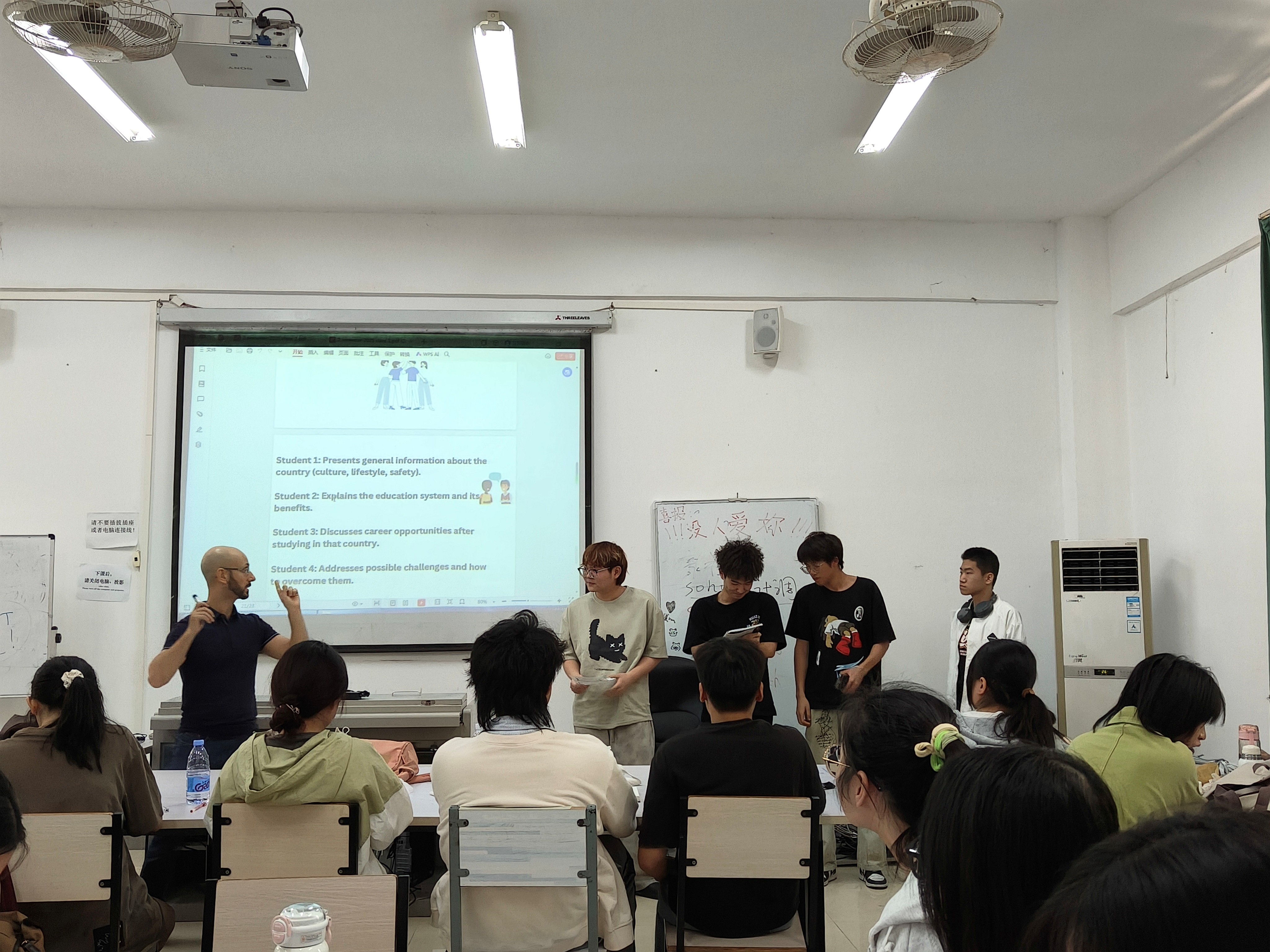 多维联动构建教学新生态。课程采用“中外交融、线上线下、学用相长”三维架构。组建由5名资深外教领衔、本土教师协同的中外教学团队,形成“系统化理论教学+精准化实战指导”双轮驱动模式;构建“线上资源库+线下演练场”双轨学习平台,每周设置固定雅思实战工作坊,配套智能化题库系统;创新开展每周2小时小班英语角,聚焦雅思高频话题与专业特色,通过角色扮演、即兴演讲、案例模拟等形式,构建职业场景语言应用体系。
